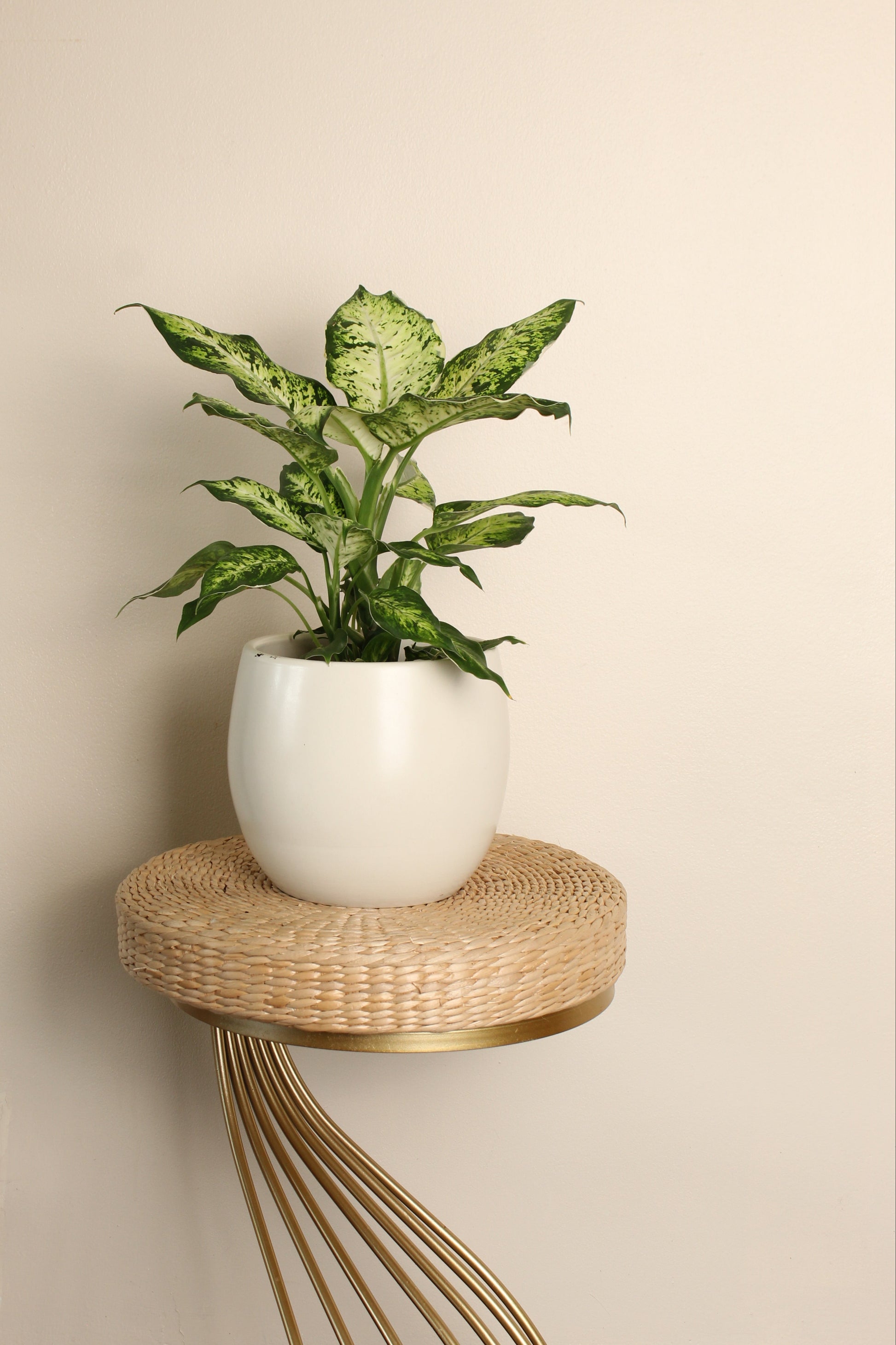 Con su follaje amplio y abigarrado, la Dieffenbachia Ala de Ángel resalta por sus hojas verdes con vetas claras en tonos crema o blanco, que le dan un aspecto luminoso y ornamental. Es ideal para interiores con luz filtrada, donde aporta frescura y elegancia. Requiere riego moderado y un ambiente cálido para mantenerse en óptimas condiciones. Una planta decorativa, fácil de cuidar y de gran presencia.