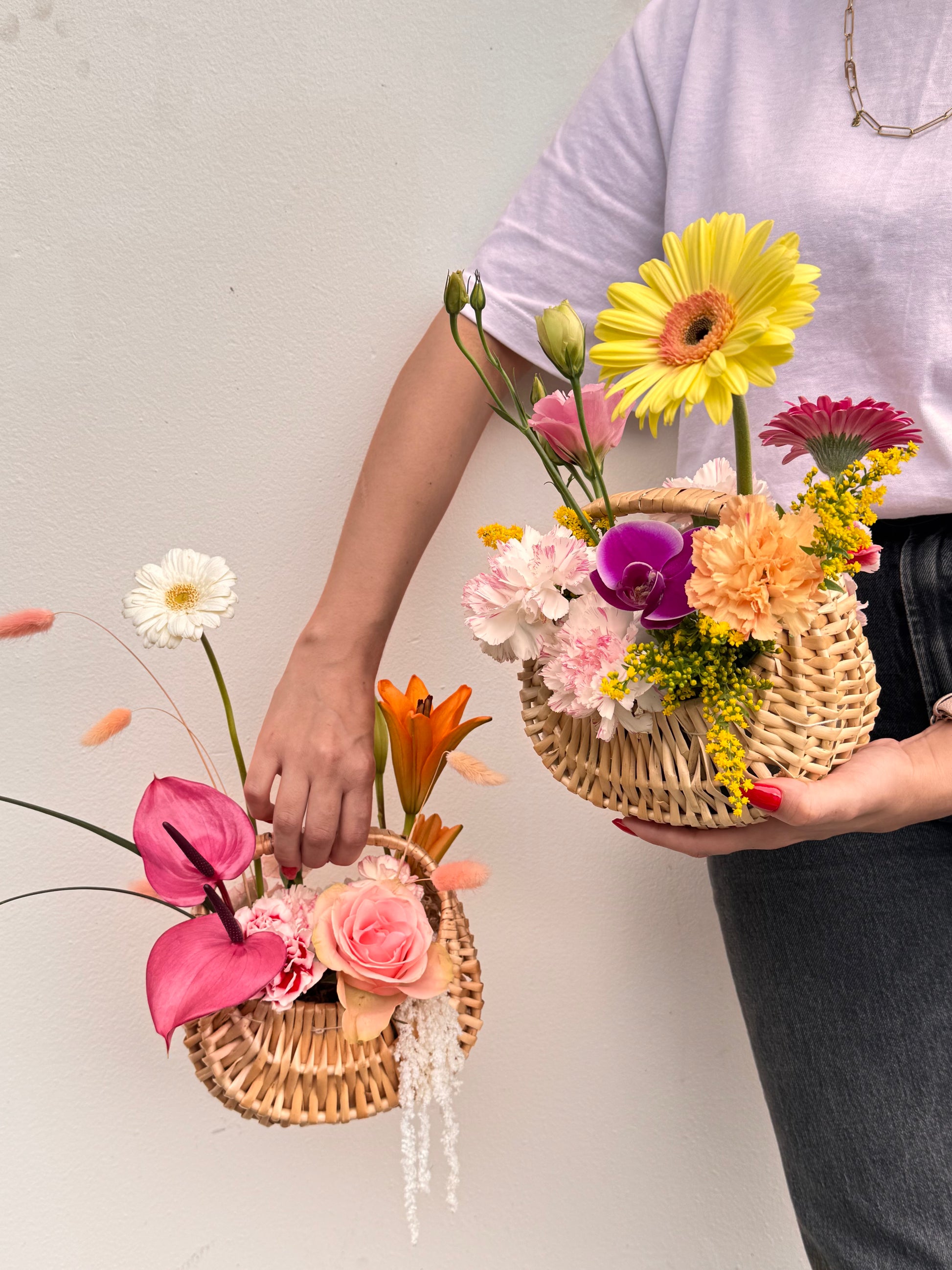Un detalle lleno de color y vida. Nuestra Canastita Primavera combina flores frescas en tonos vibrantes con una base tejida a mano que resalta su encanto natural. Ideal para regalar o decorar rincones especiales con un toque artesanal y floral.