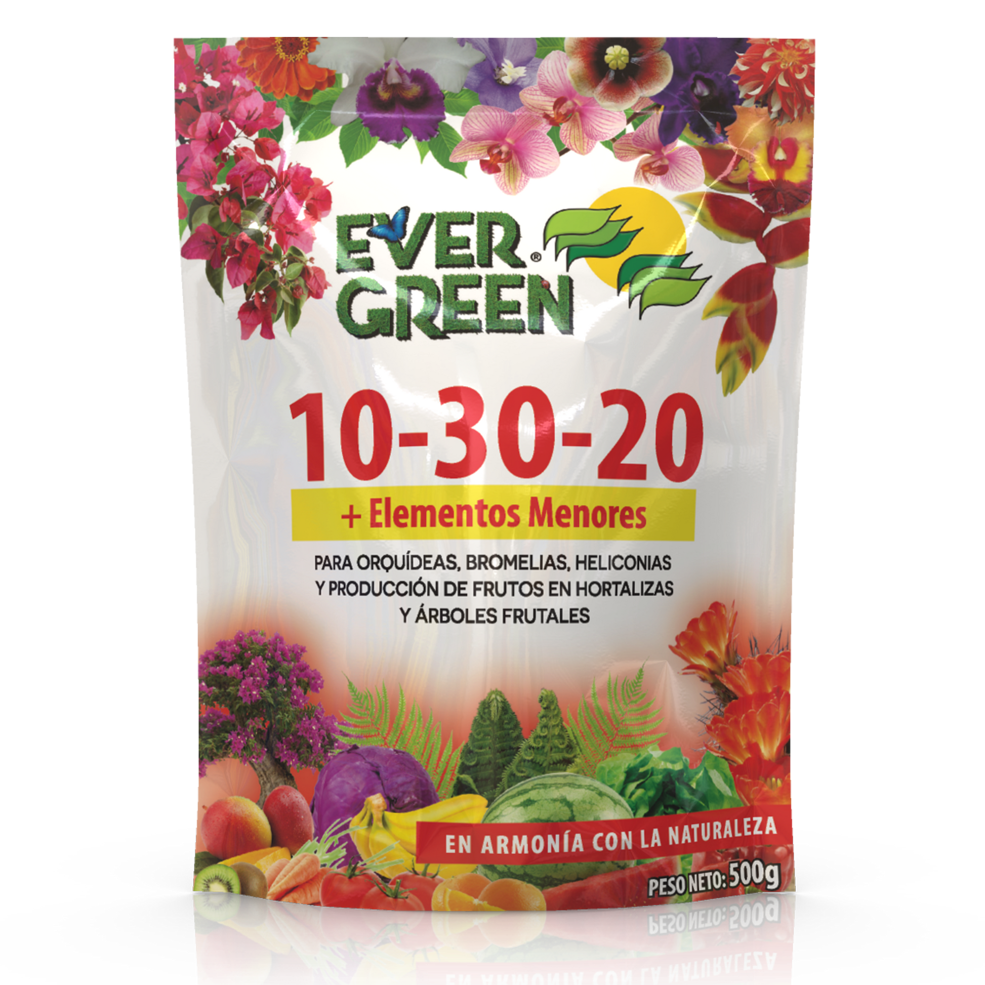 EVER GREEN SUPER NUTRIENT 10-30-20 fertilizer is a formula specially designed to stimulate flowering and enhance color in orchids, bromeliads, and heliconias. It also helps increase the production of vegetables and fruit trees.