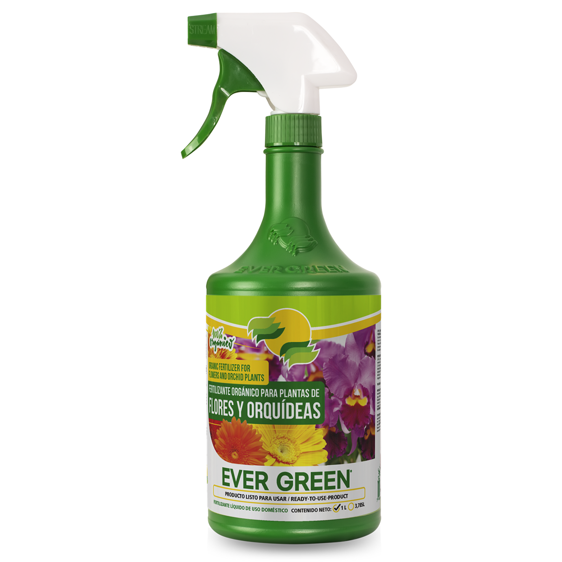 EVER GREEN ORGANIC FERTILIZER FOR FLOWERING AND ORCHID PLANTS is a foliar nutrient designed for use on all types of ornamental flowering plants, both indoors and in gardens. Its formula contains both Major and Minor Elements for the best nutrition for your plants. It is ideal because it promotes rapid growth, accelerates flowering, and